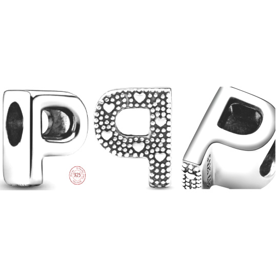 Charm Sterlingové stříbro 925 Abecední písmeno P, korálek na náramek