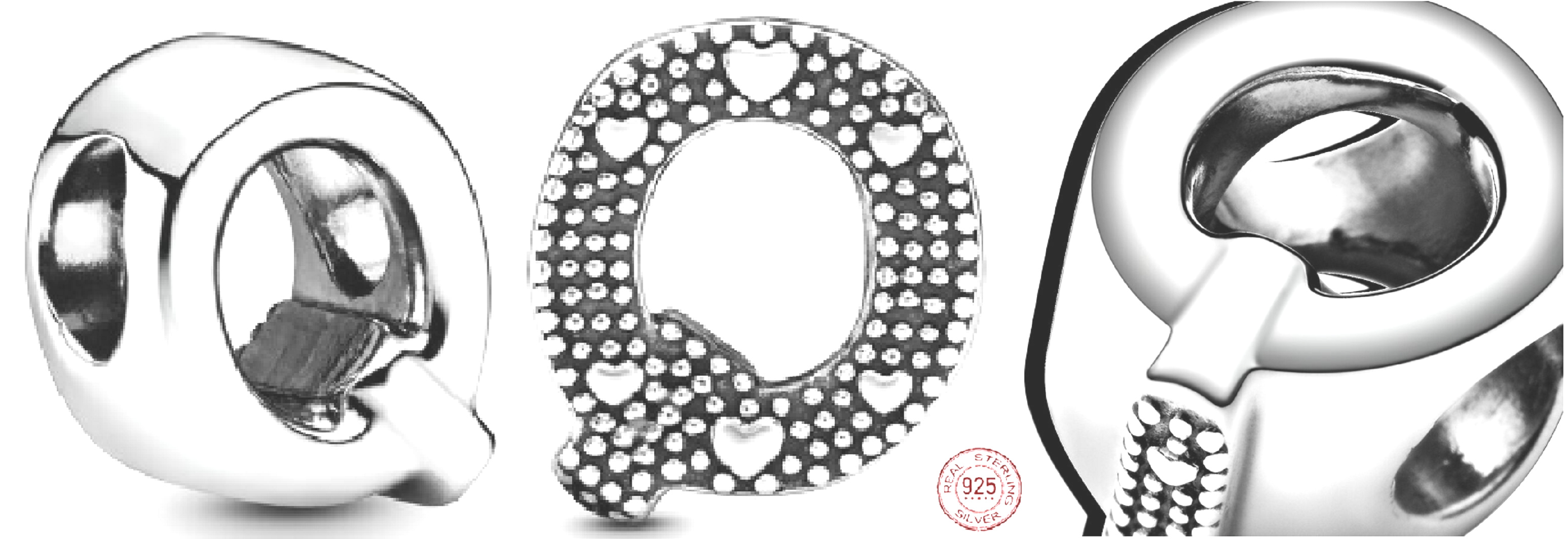 Charm Sterlingové stříbro 925 Abecední písmeno Q, korálek na náramek