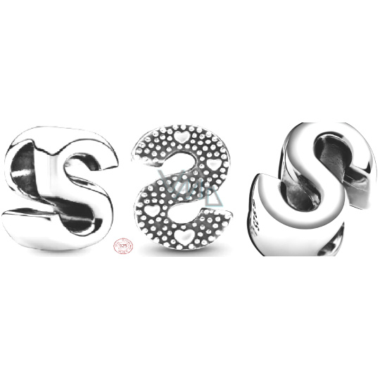 Charm Sterlingové stříbro 925 Abecední písmeno S, korálek na náramek