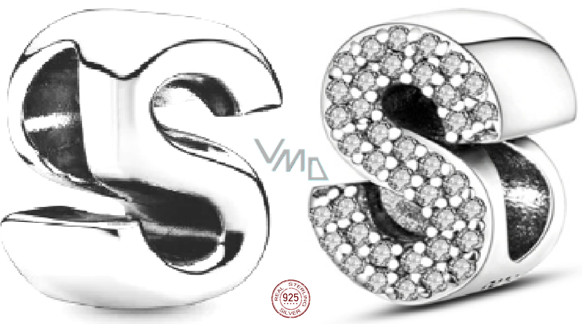 Charm Sterlingové stříbro 925 Abecední písmeno S, korálek na náramek