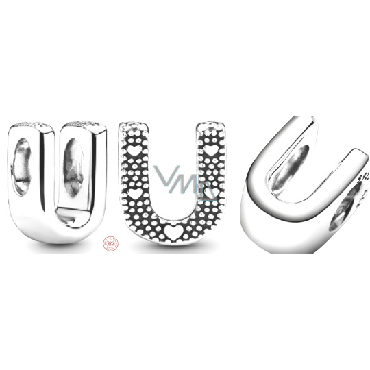 Charm Sterlingové stříbro 925 Abecední písmeno U, korálek na náramek