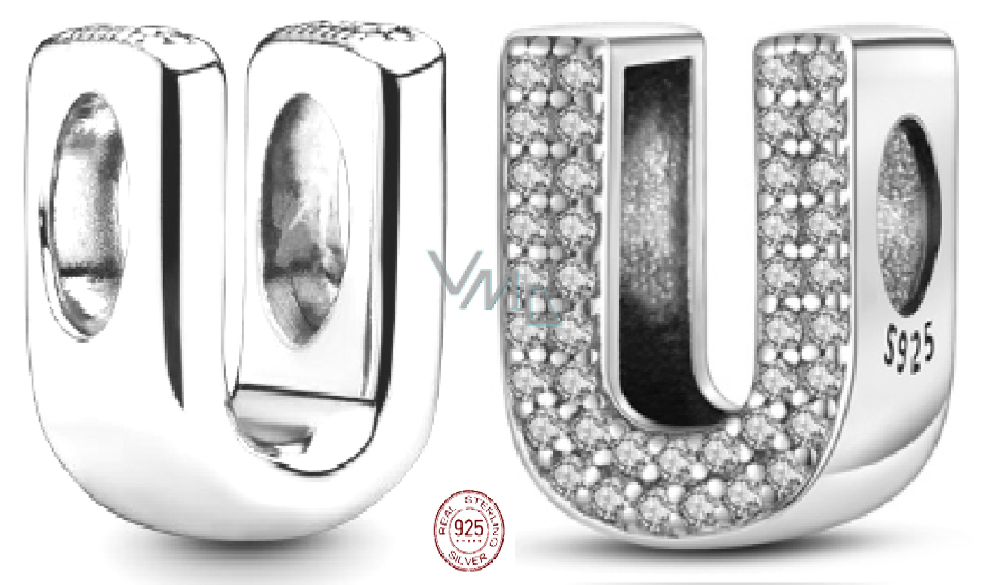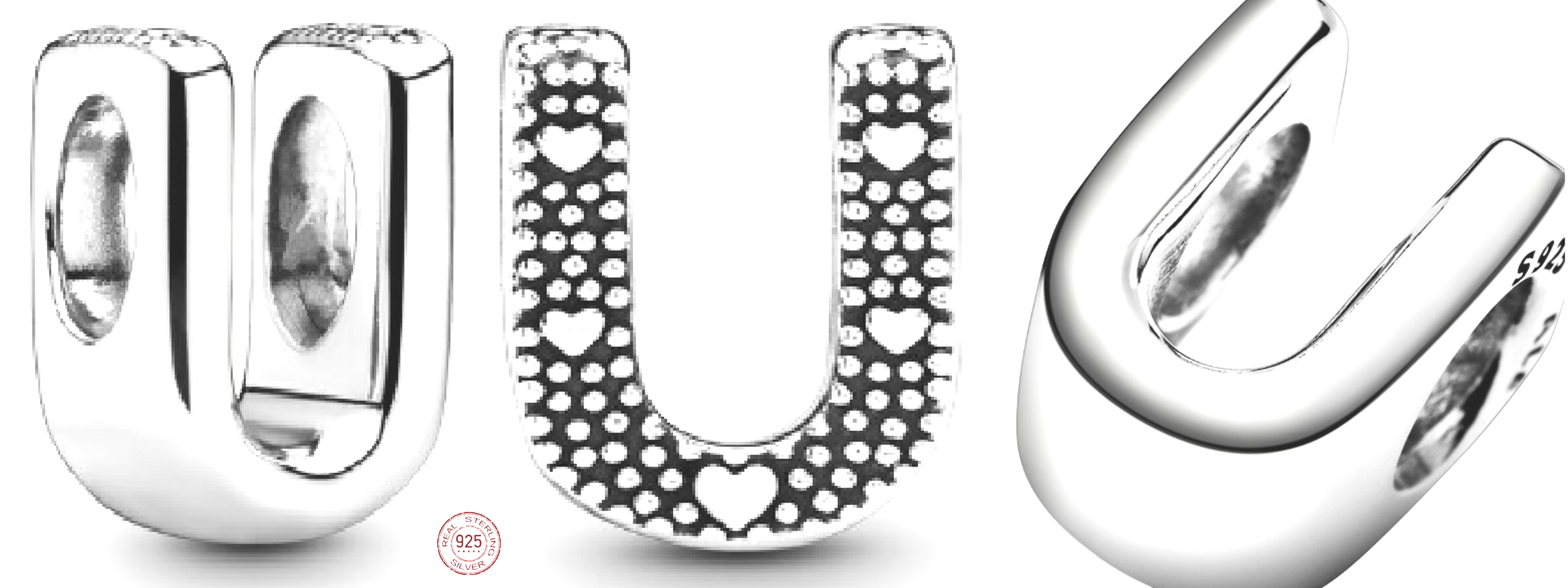 Charm Sterlingové stříbro 925 Abecední písmeno U, korálek na náramek