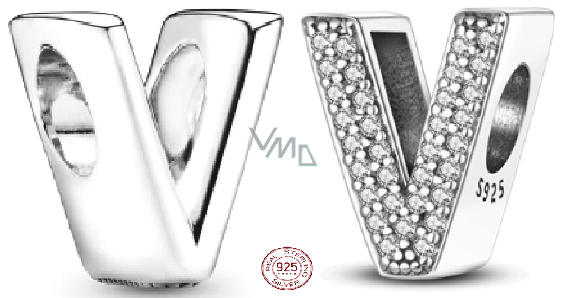 Charm Sterlingové stříbro 925 Abecední písmeno V, korálek na náramek