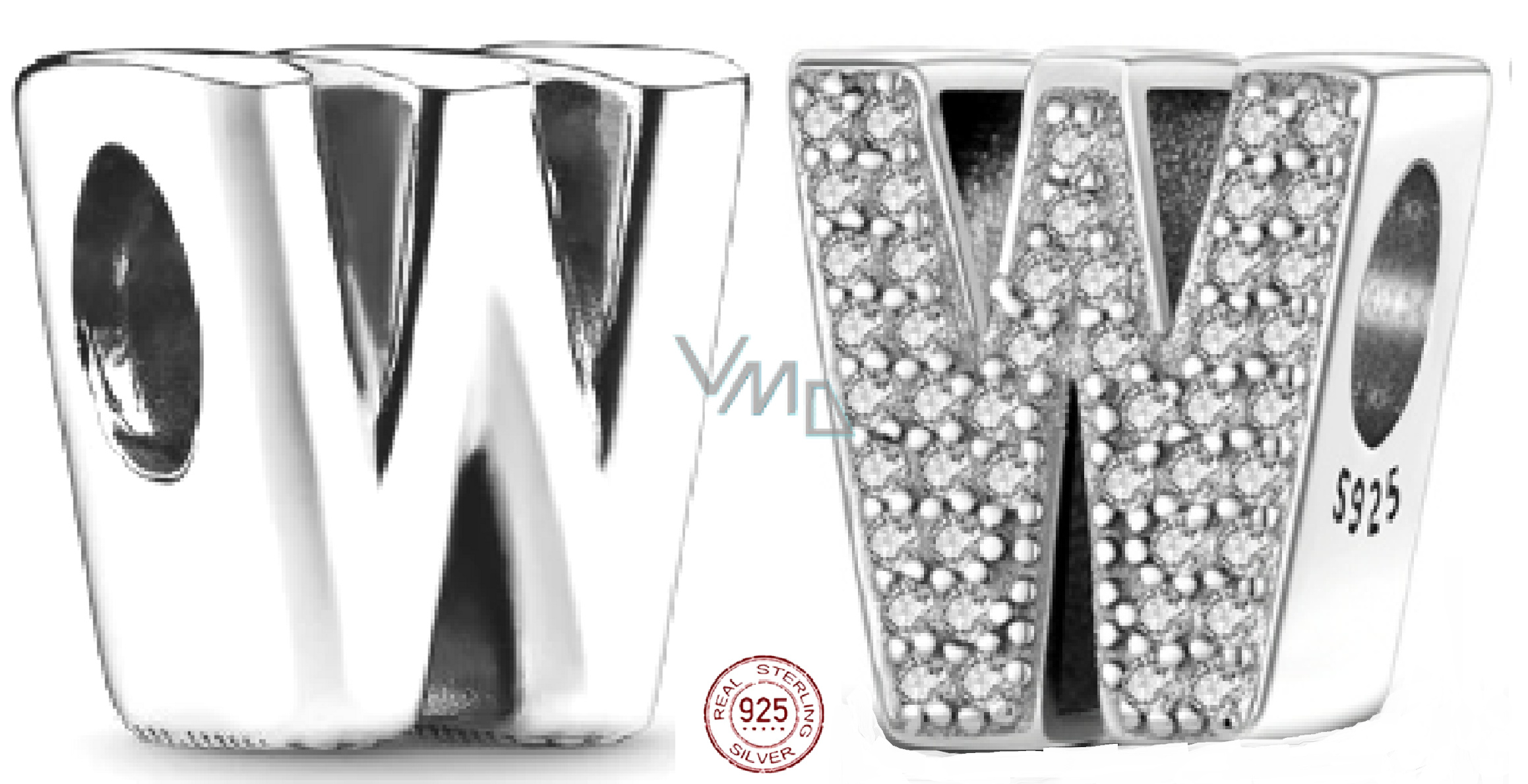 Charm Sterlingové stříbro 925 Abecední písmeno W, korálek na náramek