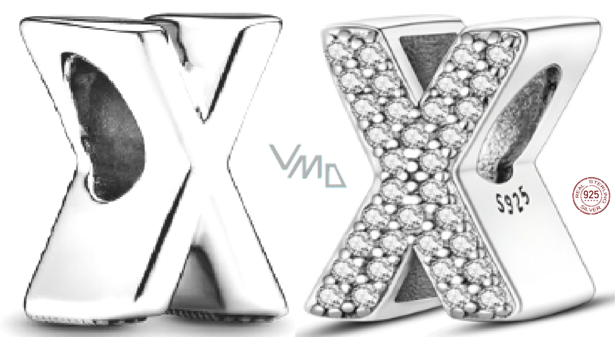 Charm Sterlingové stříbro 925 Abecední písmeno X, korálek na náramek