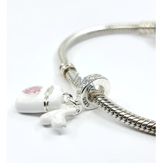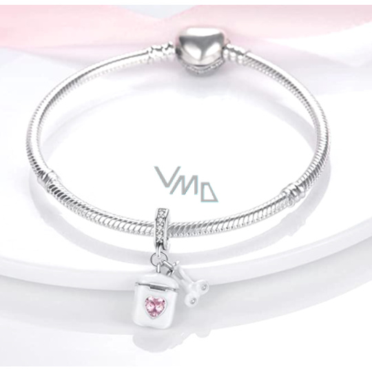 Charm Sterlingové stříbro 925 Airpods sluchátka s růžovým srdcem, 2v1 přívěsek na náramek zájmy