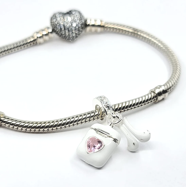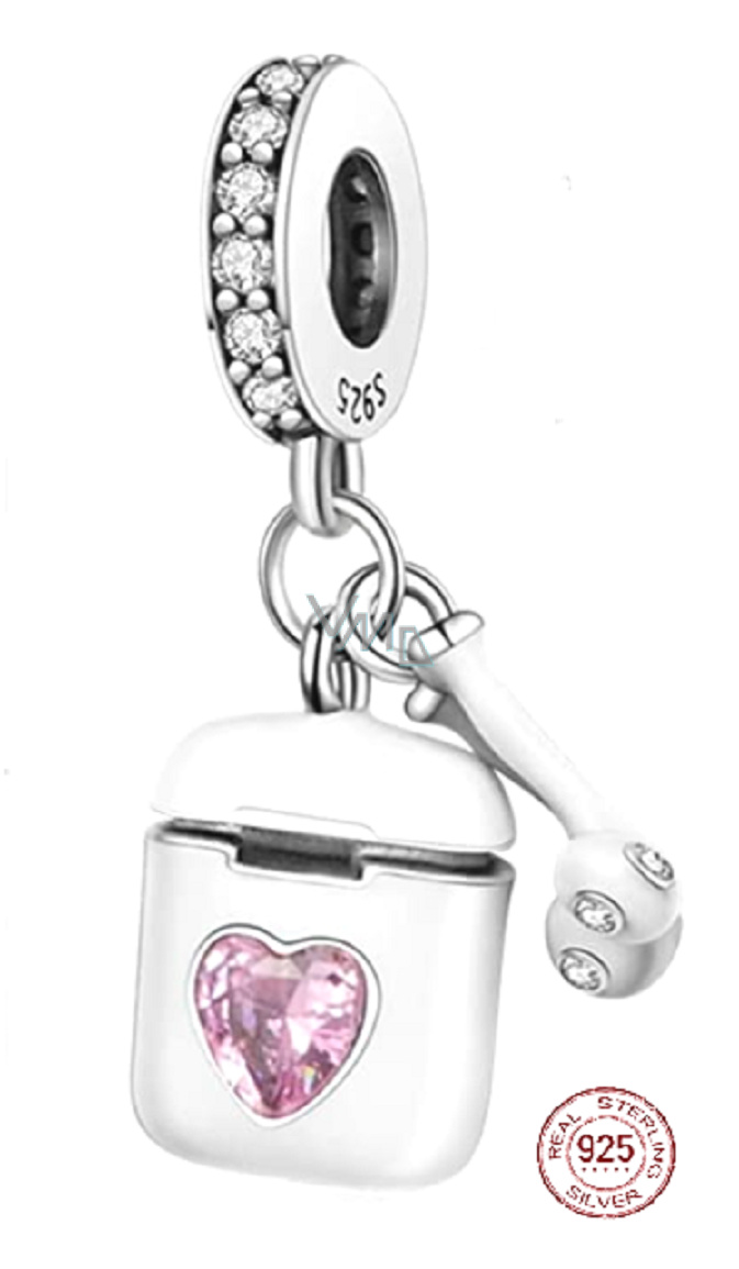 Charm Sterlingové stříbro 925 Airpods sluchátka s růžovým srdcem, 2v1 přívěsek na náramek zájmy