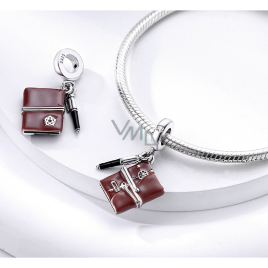 Charm Sterlingové stříbro 925 Diář a pero, 3v1 přívěsek na náramek zájmy