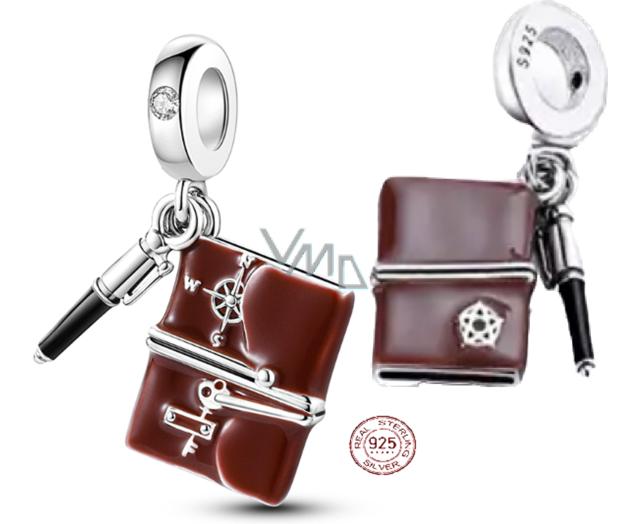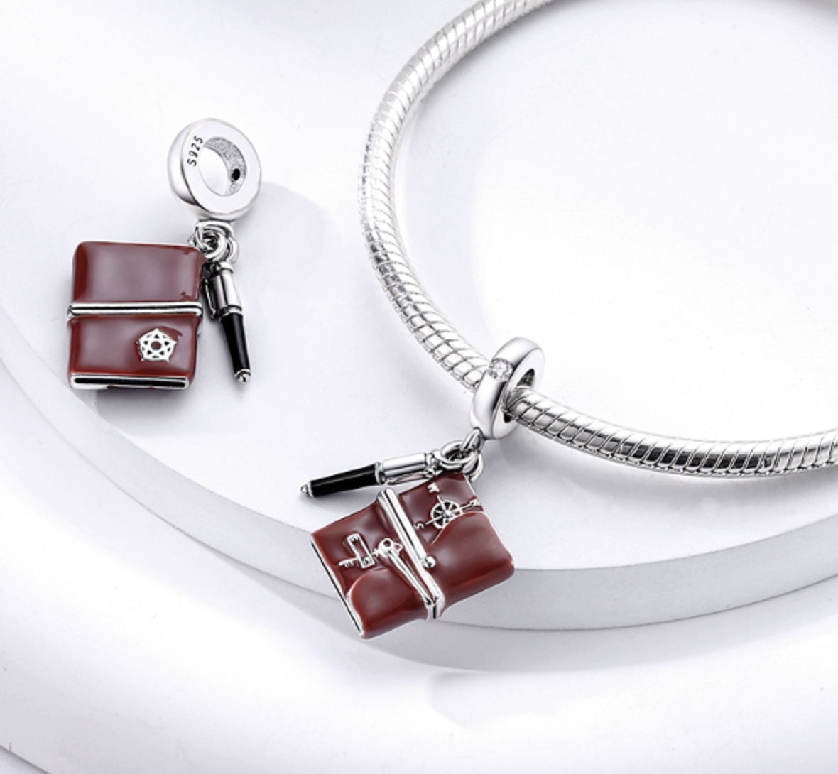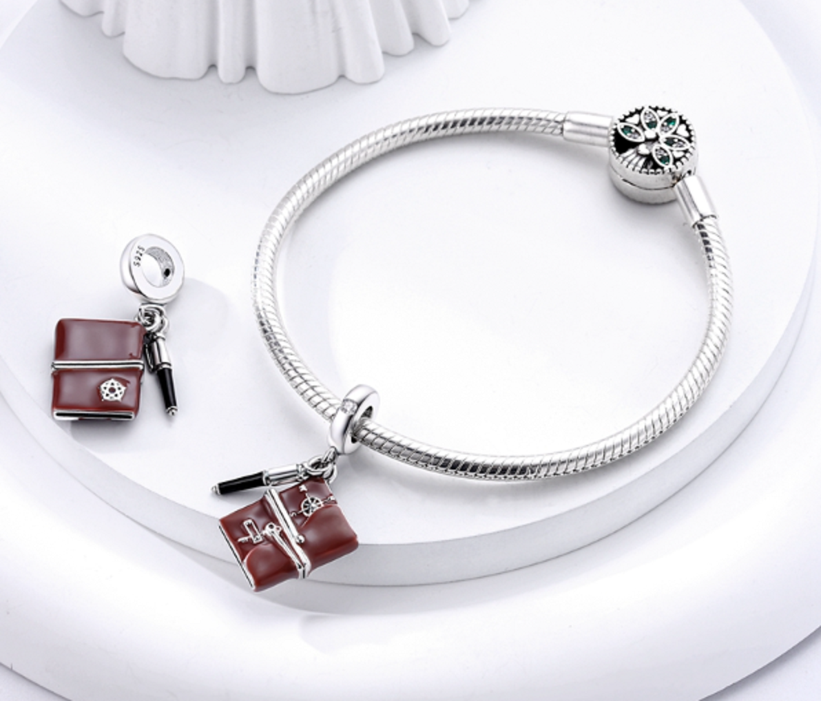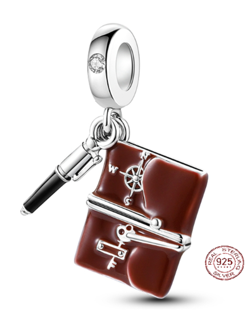 Charm Sterlingové stříbro 925 Diář a pero, 3v1 přívěsek na náramek zájmy