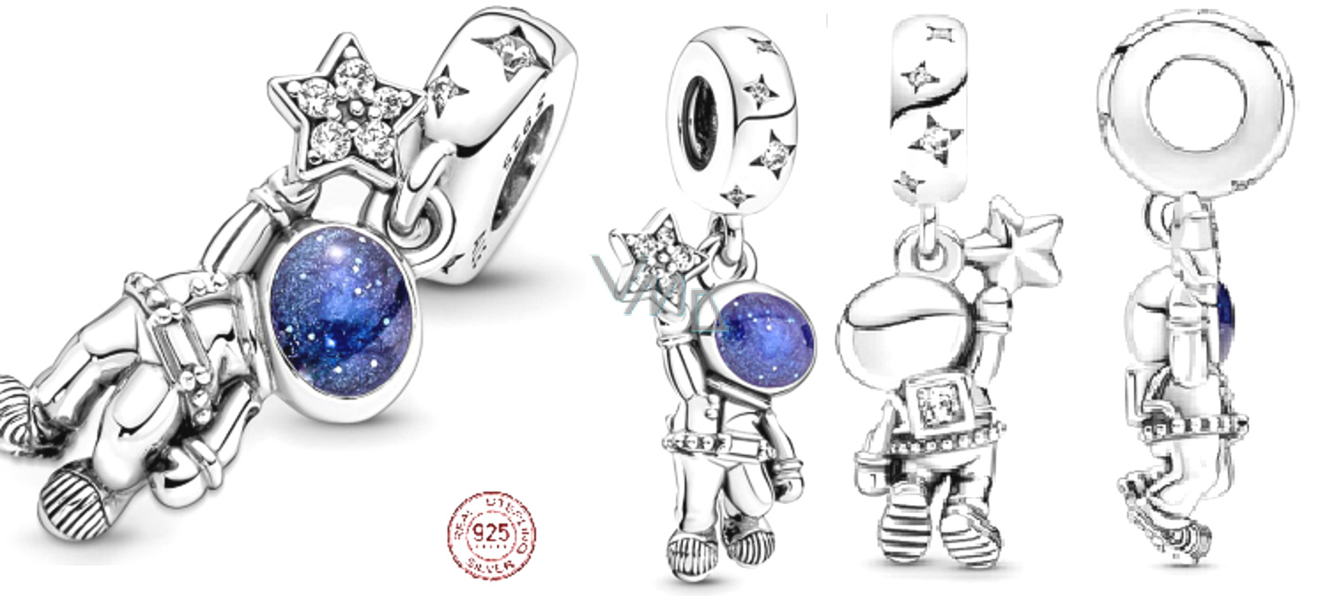 Charm Sterlingové stříbro 925 Astronaut v galaxii, přívěsek na náramek zájmy