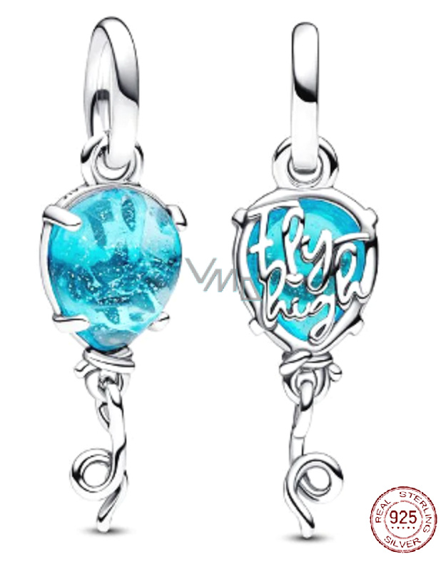 Charm Sterlingové stříbro 925 Balonek z modrého muránského skla, přívěsek na náramek symbol