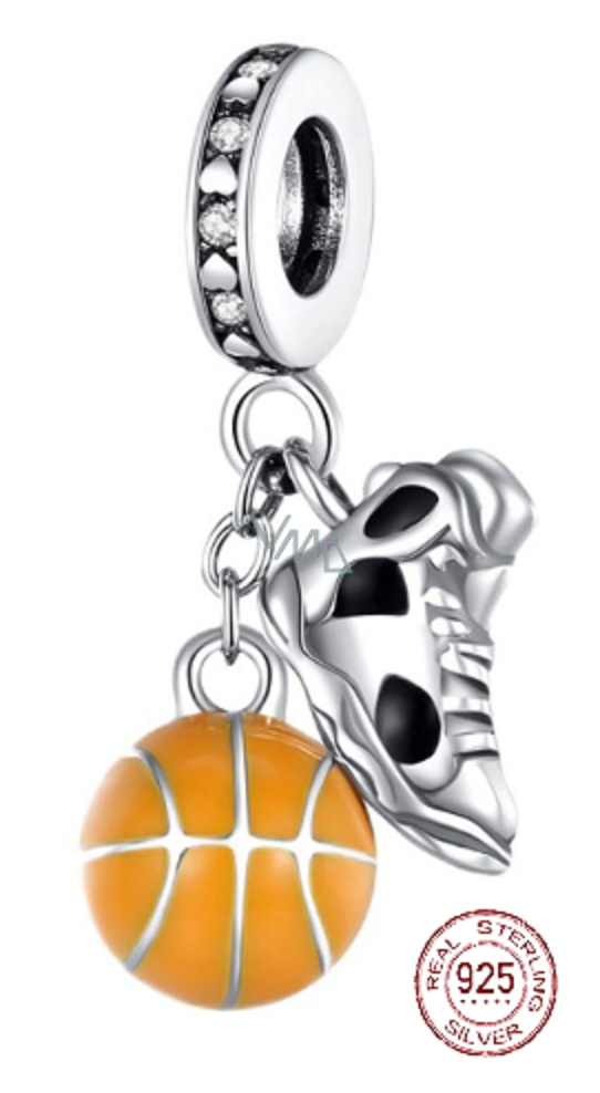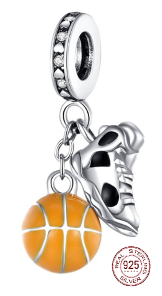 Charm Sterlingové stříbro 925 Basketbal míč a teniska, 2v1 přívěsek na náramek sport
