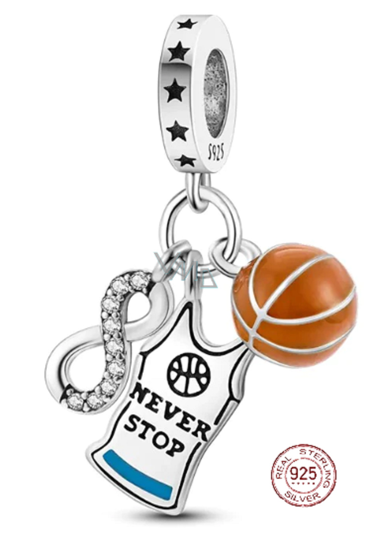 Charm Sterlingové stříbro 925 Basketbal - nekonečná láska 3v1, přívěsek na náramek sport