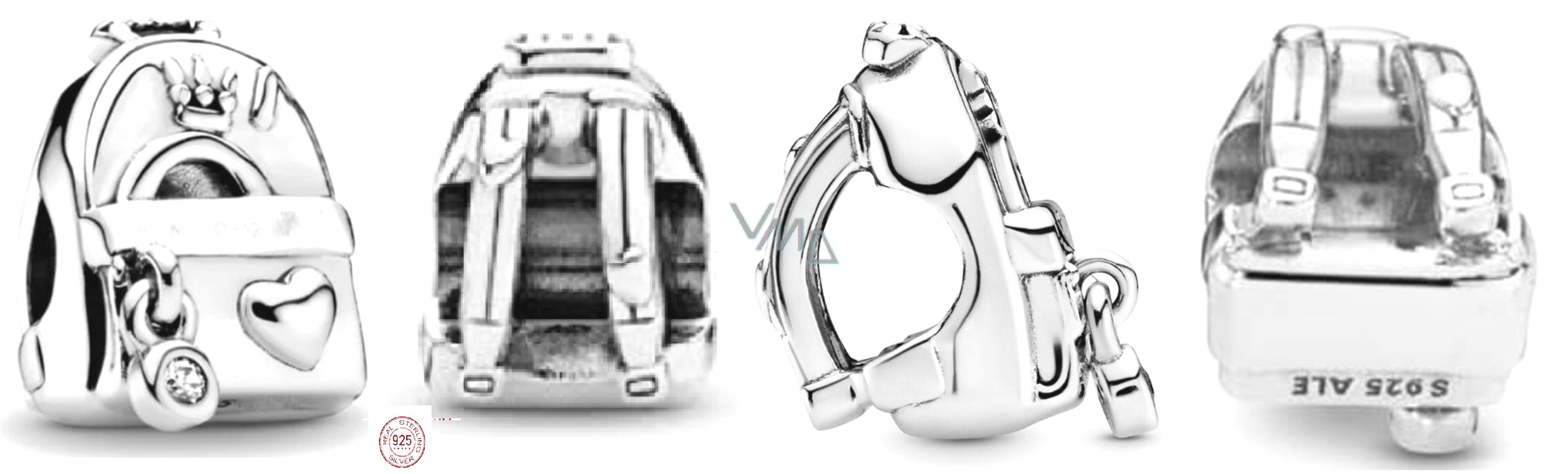Stylový korálek, vyrobený ze sterlingového stříbra, ve tvaru fashion batůžku, zdobený srdíčkem s kamínkem kubické zirkonie. Jedná se o klip, který lze napevno připevnit na váš náramek. Dokonalý šperk nejen pro školačky.