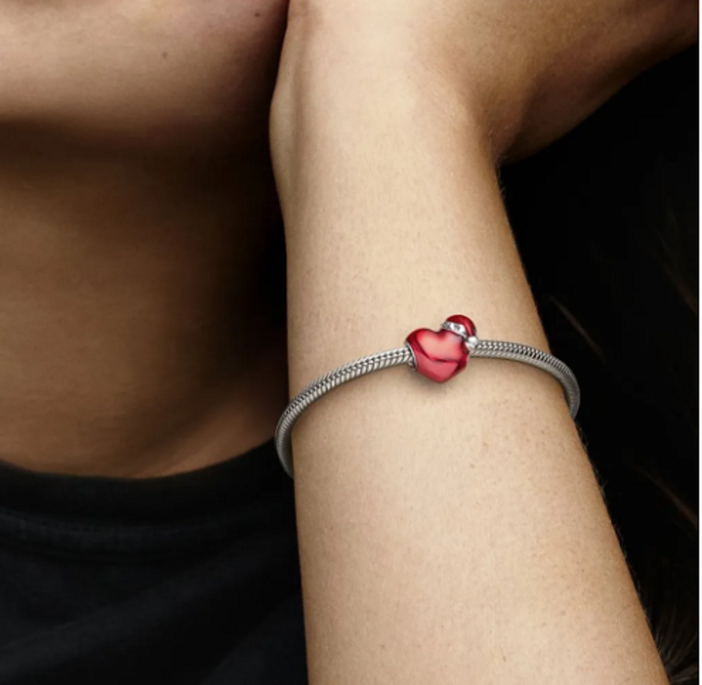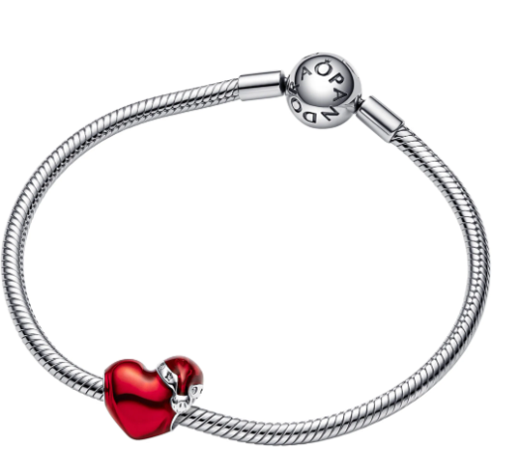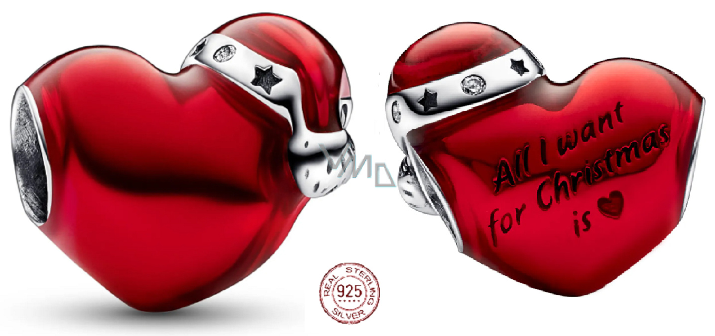 Charm Sterlingové stříbro 925 Červené vánoční srdce, korálek na náramek Vánoce