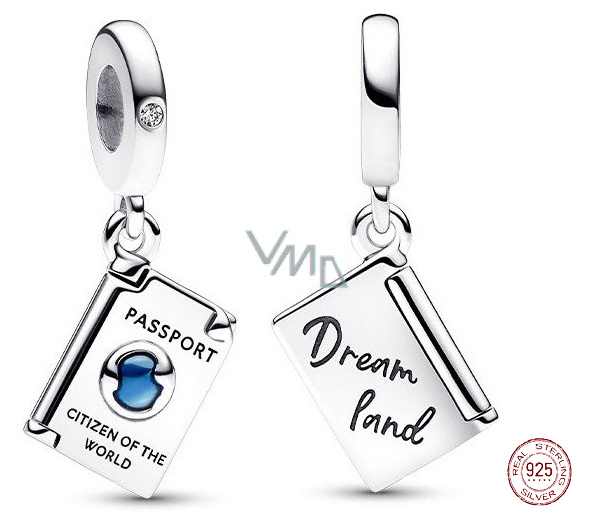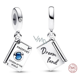 Charm Sterlingové stříbro 925 Cestovní pas se zirkonií, otevíratelný přívěsek na náramek cestování