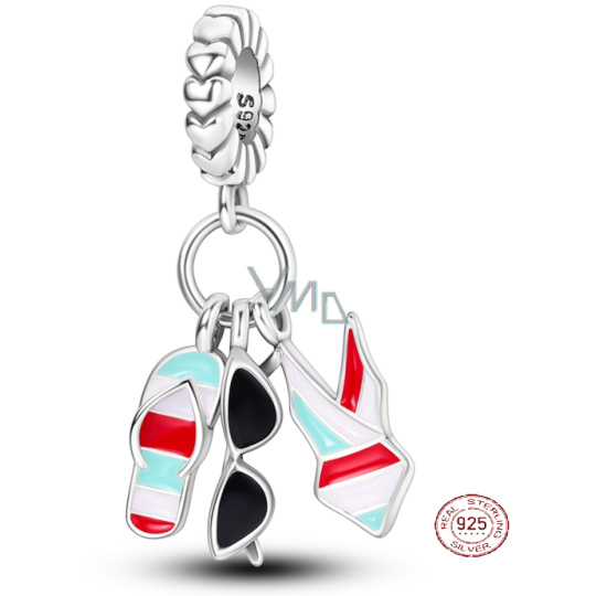 Charm Sterlingové stříbro 925 Chic style - Letní zábava, brýle, plavky, žabky, 3v1 přívěsek na náramek, zájmy