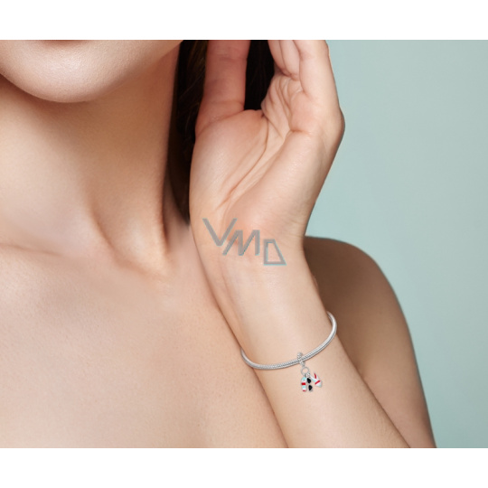 Visací přívěsek 925 Sterling Silver s plavkami, slunečními brýlemi a žabkou, dekorováno hladkým červeným, modrým a černým smaltem. Na prstenu přívěsku jsou kolem dokola malá srdíčka. S každým přívěskem vyprávěj svůj příběh a vytvoř si náramek, který odráží, kdo jsi a co je pro tebe důležité. Tvůj styl. Tvůj náramek. Tvůj příběh.
