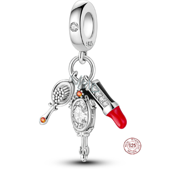 Charm Sterlingové stříbro 925 Chic style - Rtěnka, hřeben, zrcátko 3v1, přívěsek na náramek, zájmy