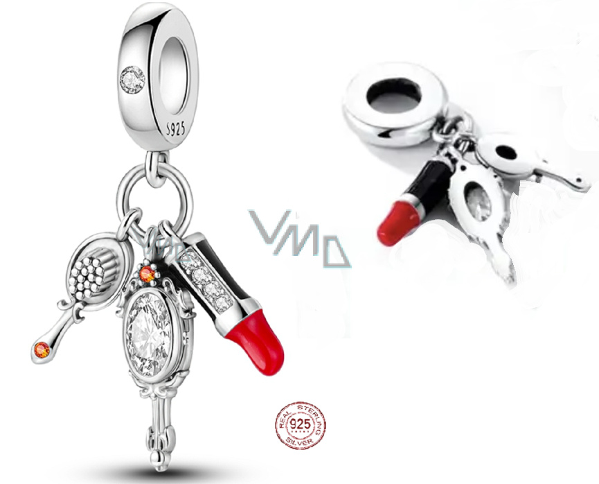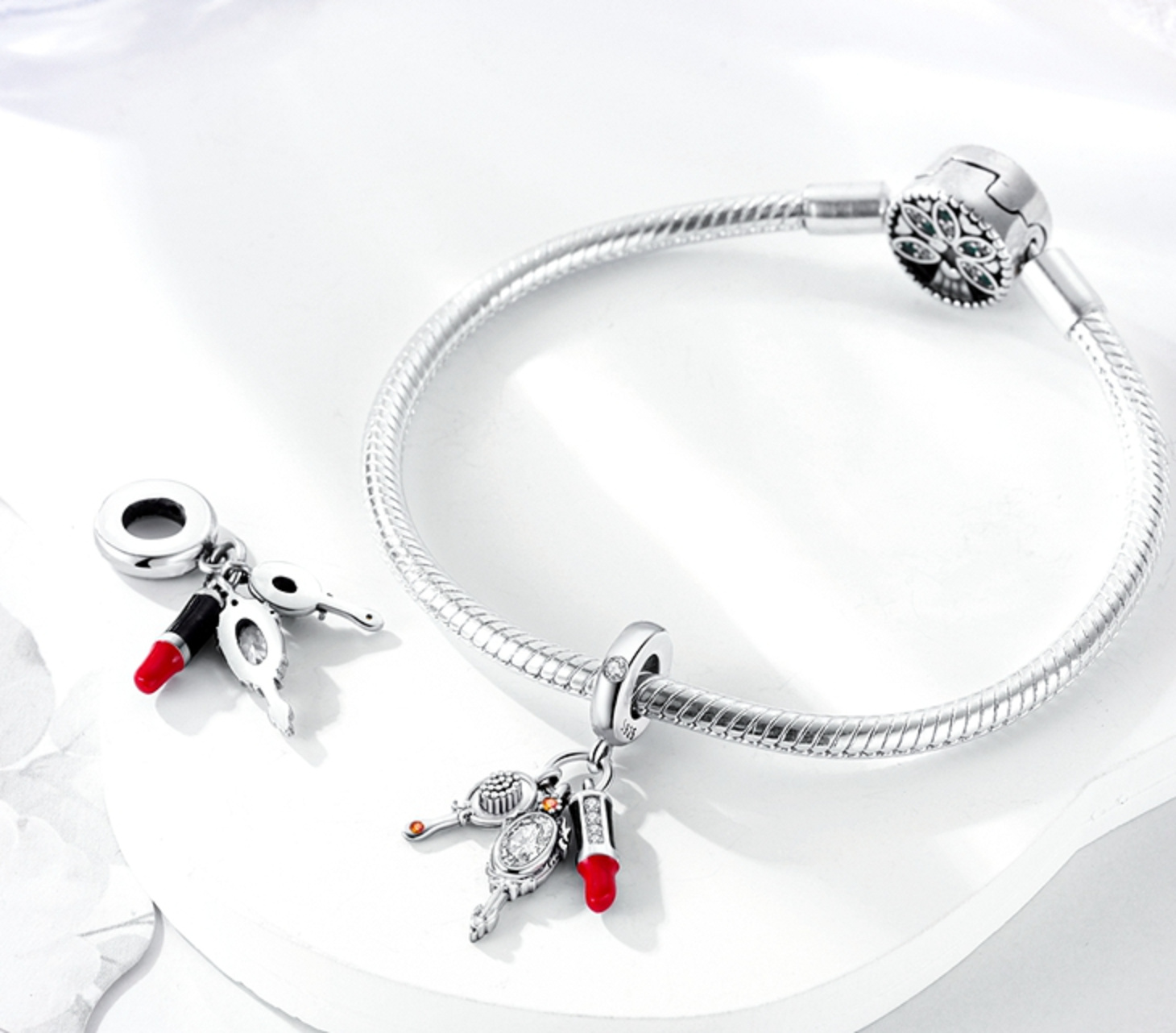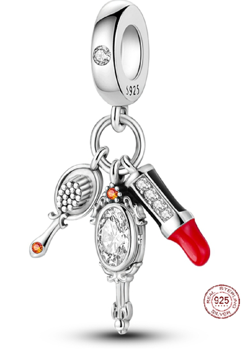 Charm Sterlingové stříbro 925 Chic style - Rtěnka, hřeben, zrcátko 3v1, přívěsek na náramek, zájmy
