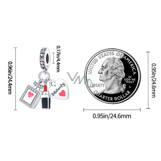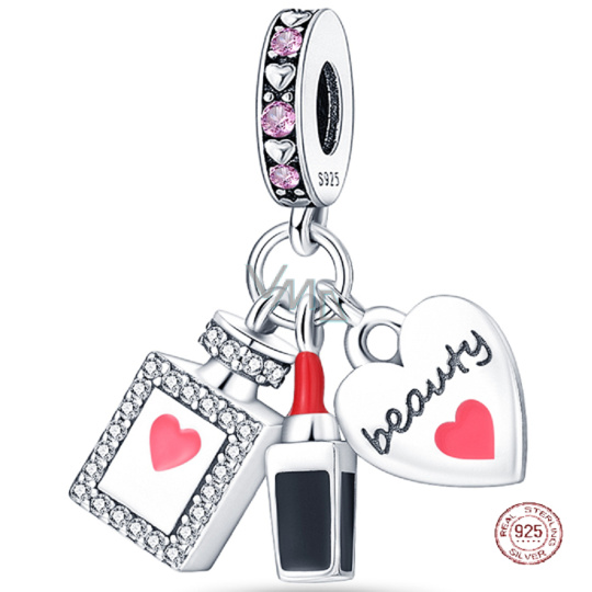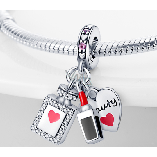 Charm Sterlingové stříbro 925 Chic style - Rtěnka, parfém, srdce 3v1, přívěsek na náramek zájmy