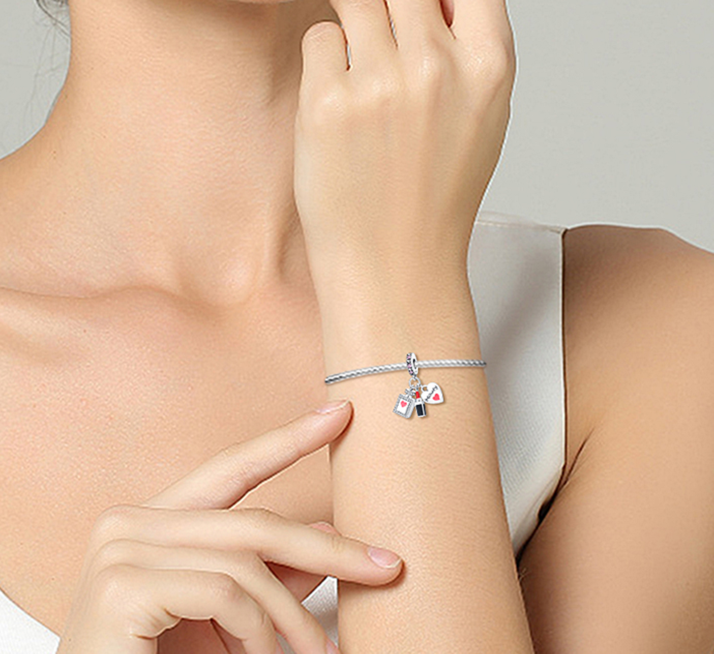 Charm Sterlingové stříbro 925 Chic style - Rtěnka, parfém, srdce 3v1, přívěsek na náramek zájmy