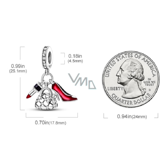 Charm Sterlingové stříbro 925 Chic style - Rtěnka, střevíček, kabelky, 3v1 přívěsek na náramek, zájmy