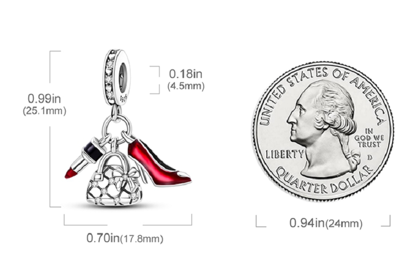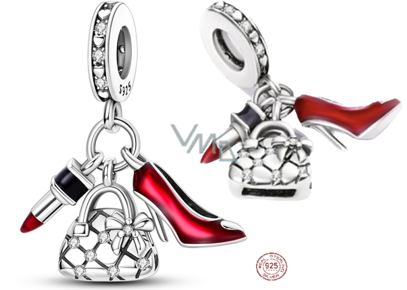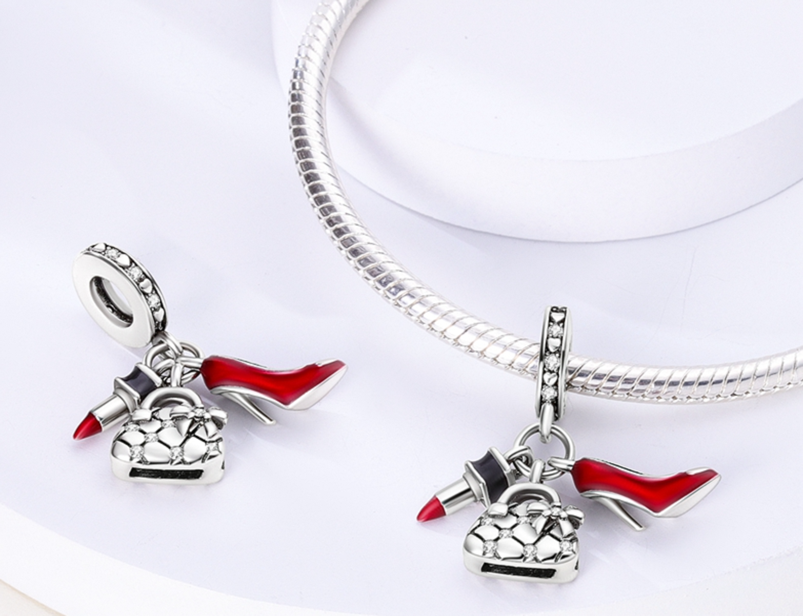 Charm Sterlingové stříbro 925 Chic style - Rtěnka, střevíček, kabelky, 3v1 přívěsek na náramek, zájmy