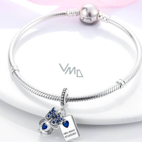 Dvojitý přívěsek s knihou s vyrytým nápisem „owl-ways reading“ a krásnou sovou navrženou s modrými třpytivými drahokamy Zirkonu. Sovička i kniha jsou opatřeny modrým Zirkonem ve tvaru srdce. Sovy symbolizují moudrost, intuici a inteligenci a knihy symbolizují znalosti a vzpomínky