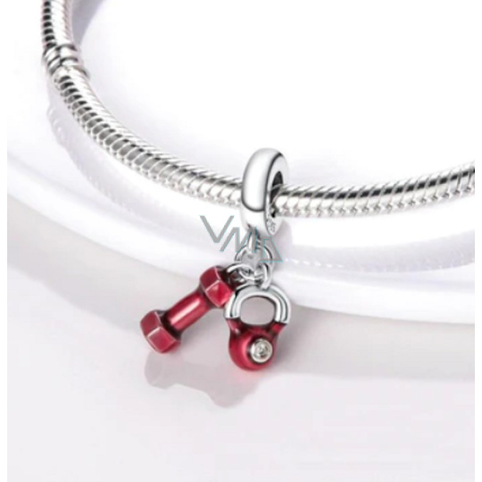 Charm Sterlingové stříbro 925 Cvičební závaží - činka a kettle 2v1, přívěsek na náramek sport