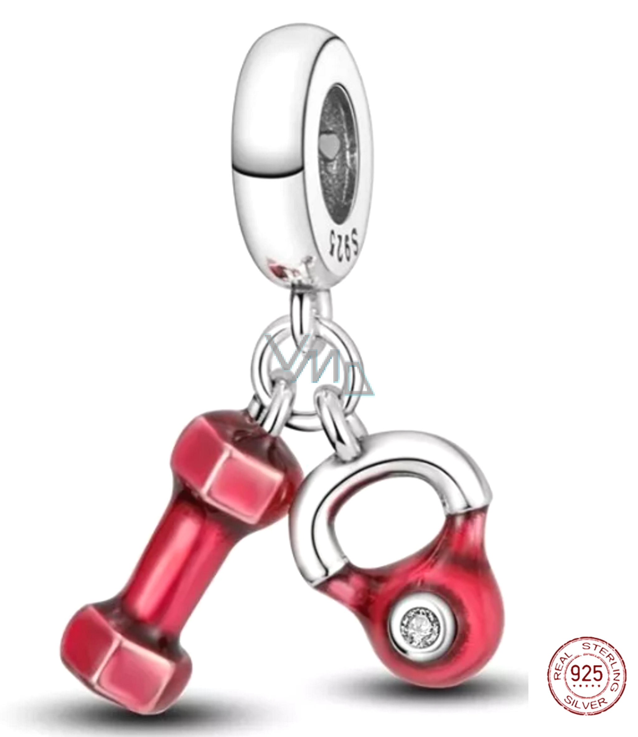 Charm Sterlingové stříbro 925 Cvičební závaží - činka a kettle 2v1, přívěsek na náramek sport