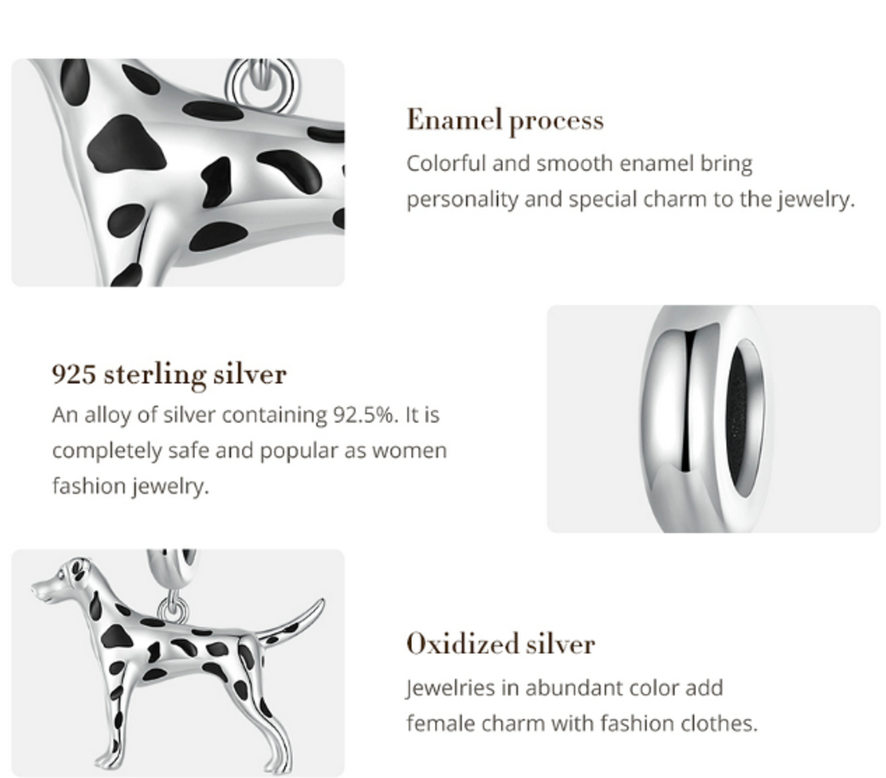 Toto speciální tečkované kouzlo se stříbrem 925 zprostředkovává štěstí lidem, kteří milují zvířata. Skvělý vzhled a krásný dárek pro příležitostné příležitosti.