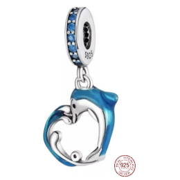 Charm Sterlingové stříbro 925 Delfín na vlně ve tvaru srdce, přívěsek na náramek moře