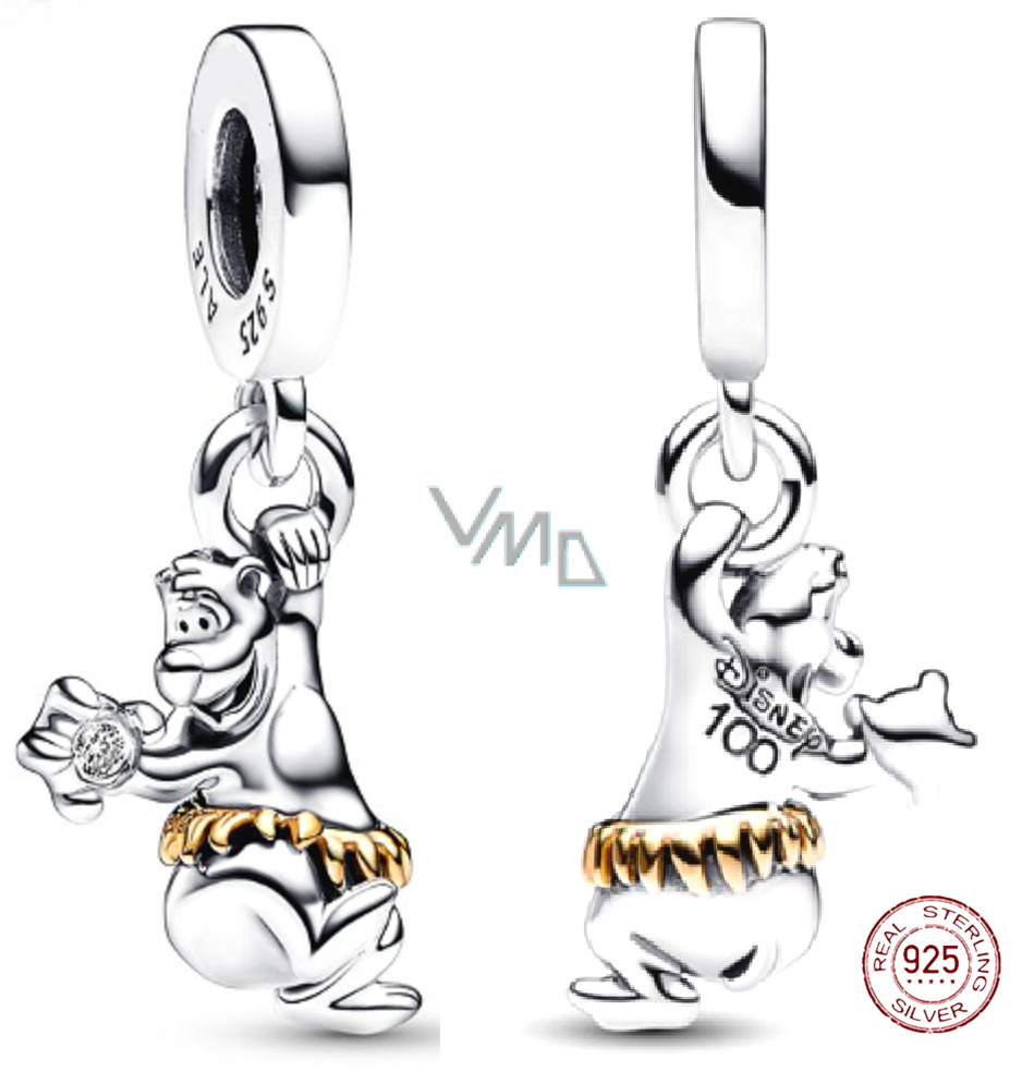 Charm Sterlingové stříbro 925 Disney 100. výročí Kniha džunglí, Balú medvěd, přívěsek na náramek, film