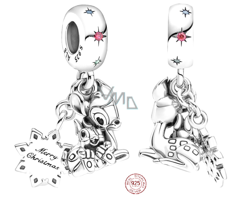 Charm Sterlingové stříbro 925 Disney Bambi a Dupík, 2v1 přívěsek na náramek Vánoce