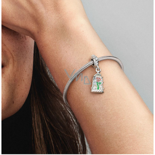 Charm Sterlingové stříbro 925 Disney Kráska a Zvíře Kouzelná růže, přívěsek na náramek, film