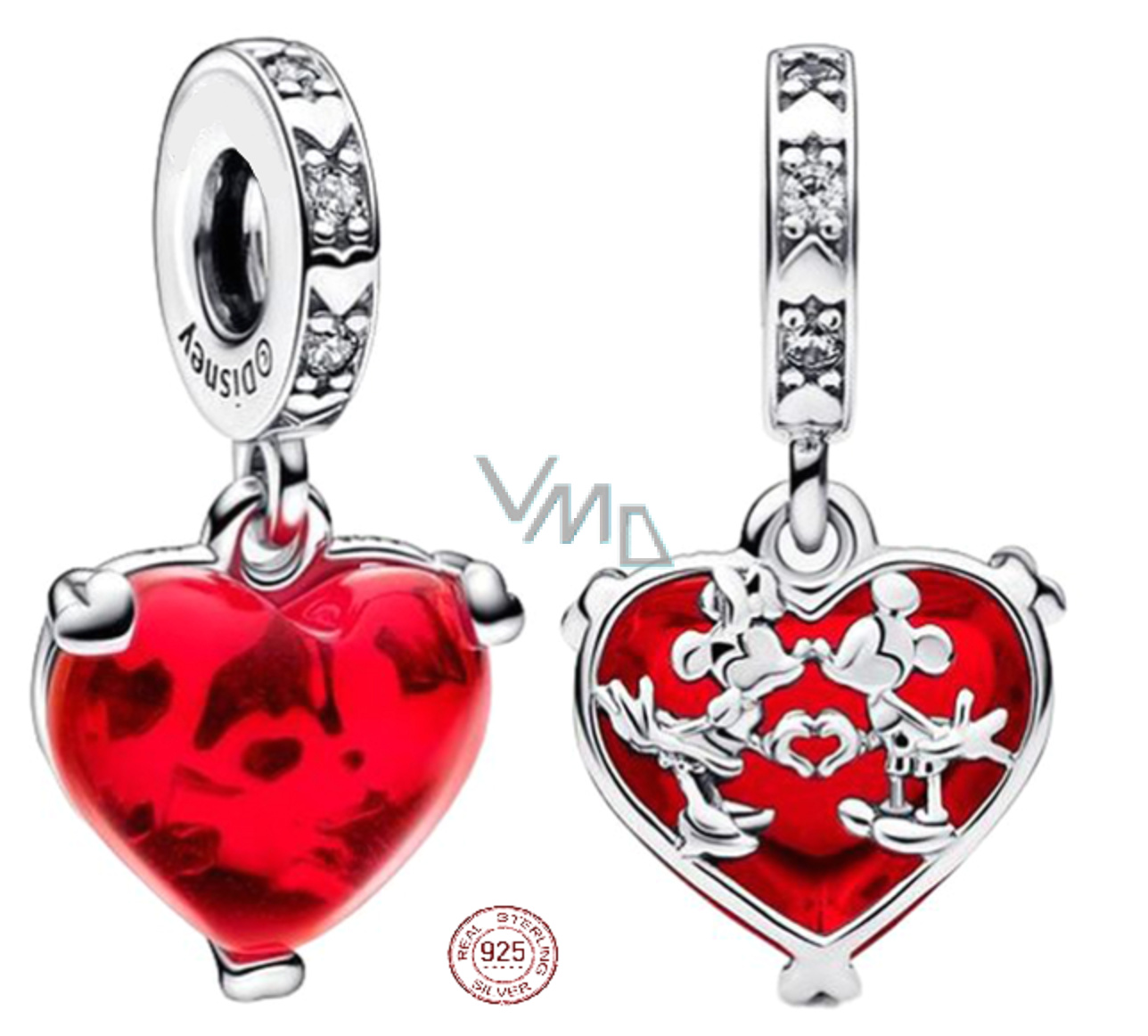 Charm Sterlingové stříbro 925 Disney Mickey a Minnie Mouse Murano srdce, přívěsek na náramek láska