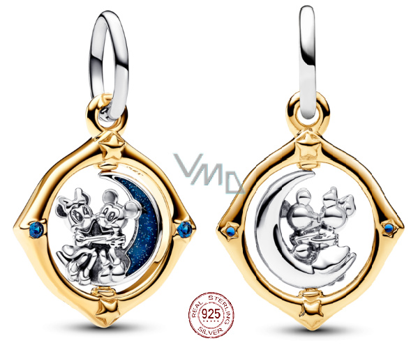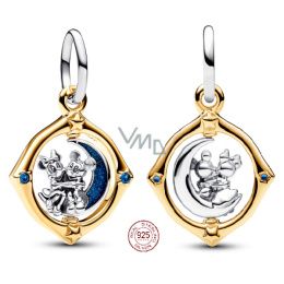 Charm Sterlingové stříbro 925 Disney Mickey Mouse & Minnie Mouse, otáčející se měsíc, přívěsek na náramek, film