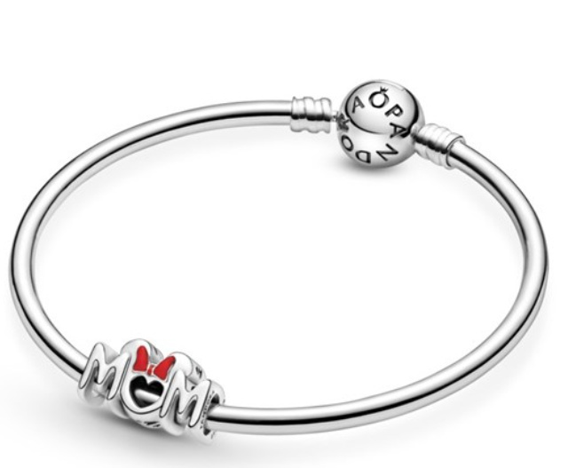 Charm Sterlingové stříbro 925 Disney Minnie Mouse, mašle a slovo Mum - Maminka, korálek na náramek, film