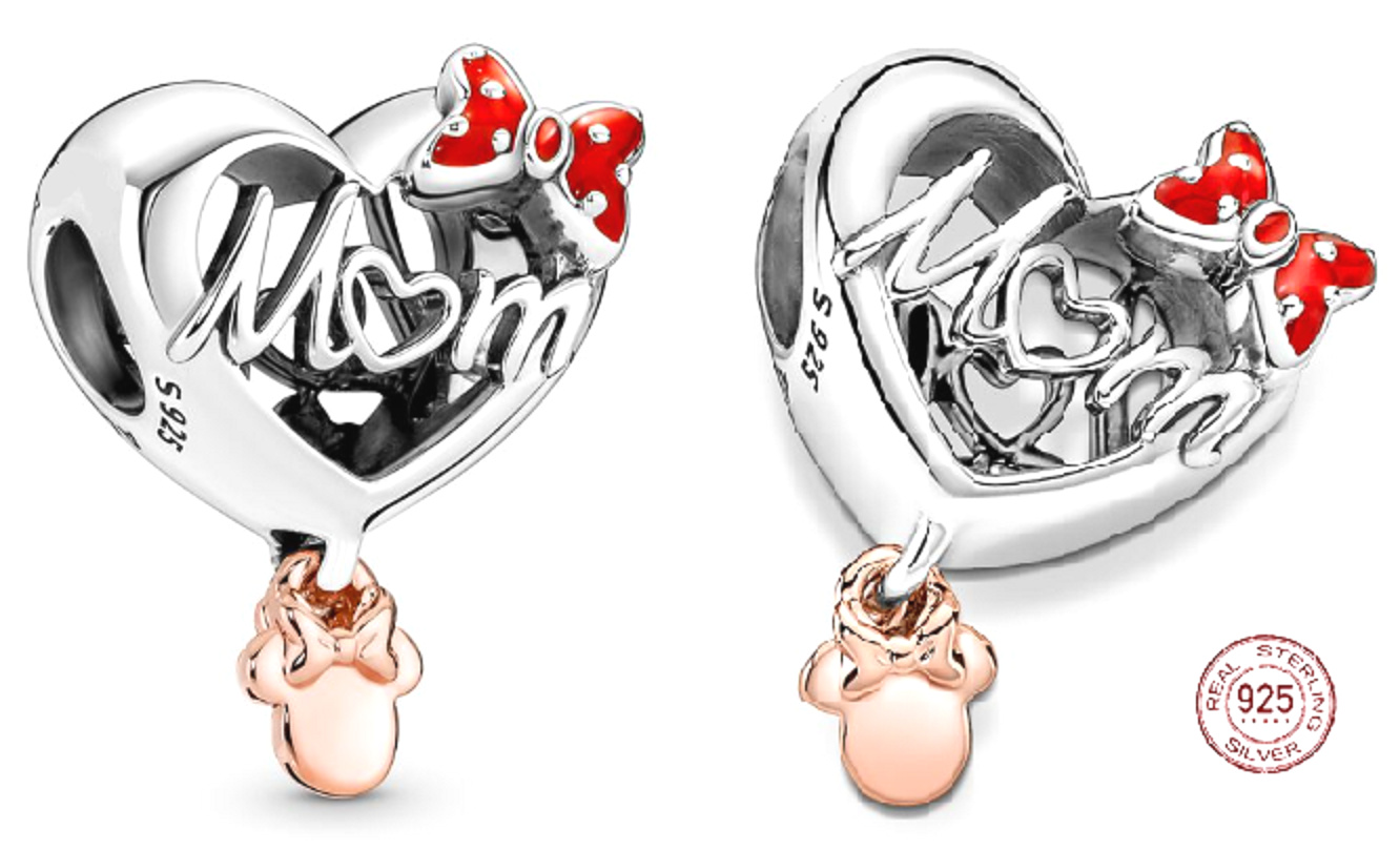 Charm Sterlingové stříbro 925 Disney Minnie Mouse Mom - Maminka, korálek na náramek, film