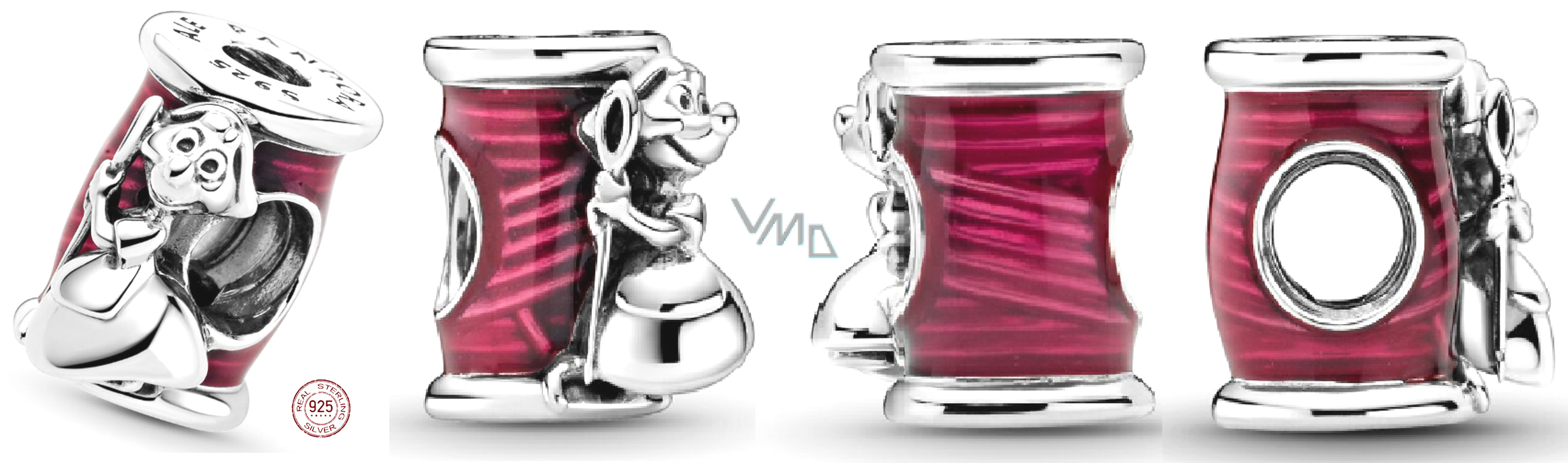 Charm Sterlingové stříbro 925 Disney Popelka - myška Suzy s jehlou a špulkou nití, korálek na náramek film