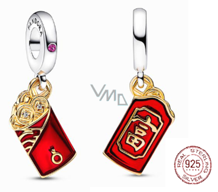 Charm Sterlingové stříbro 925 Červená obálka - bohatství, přívěsek na náramek symbol