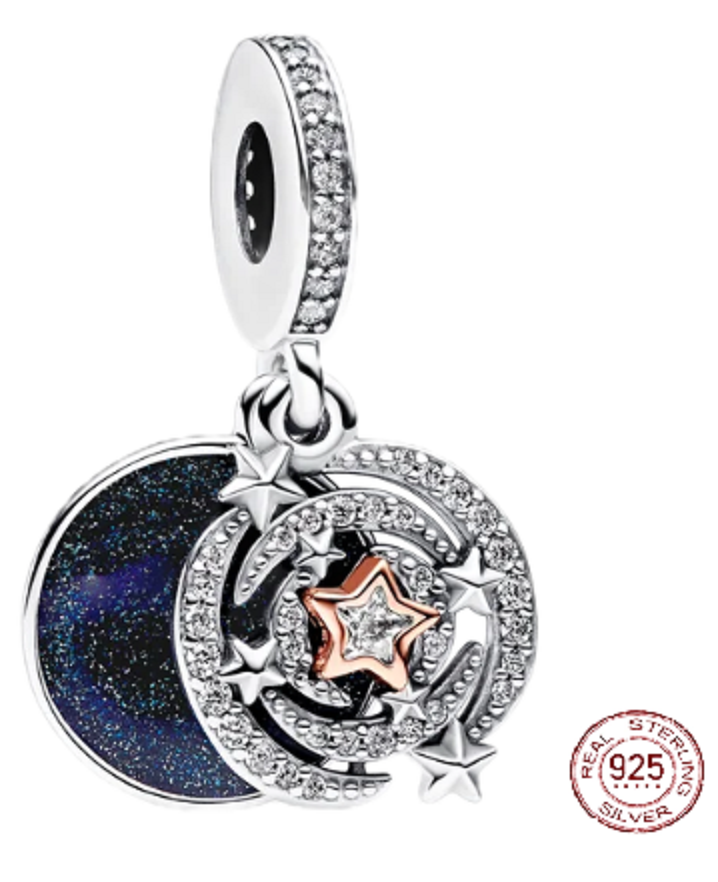 Charm Sterlingové stříbro 925 Dvoubarevná padající hvězda 2v1, přívěsek na náramek láska