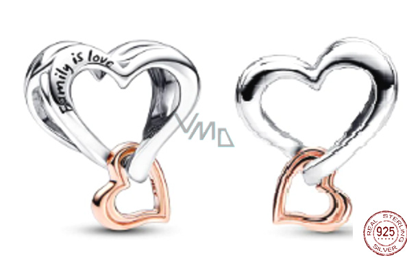 Charm Sterlingové stříbro 925 Děrované srdce s nekonečnem 2v1, korálek na náramek rodina
