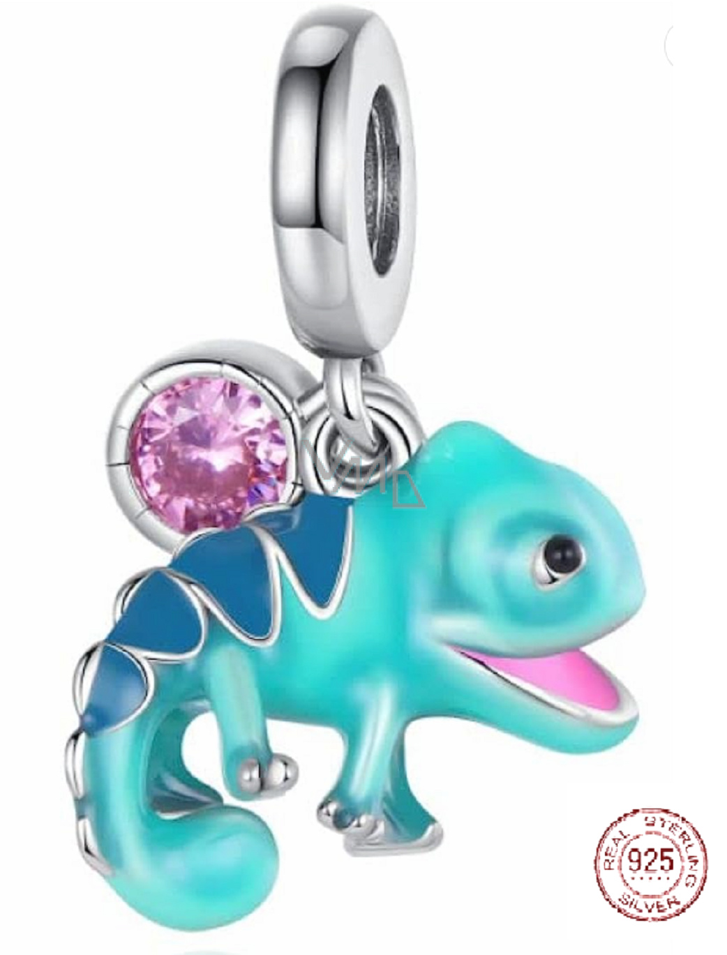 Charm Sterlingové stříbro 925 Chameleon, mění barvu na teplo, se zirkonem 2v1, přívěsek na náramek zvíře