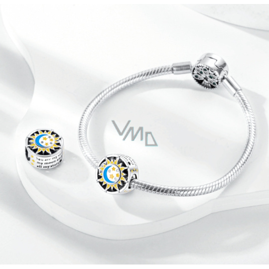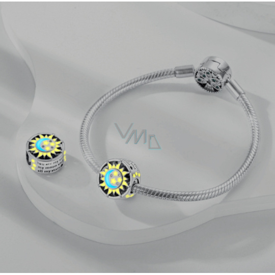 Charm Sterlingové stříbro 925 Den / noc, slunce / měsíc, stopper, zářící ve tmě luminozní klipový korálek na náramek vesmír
