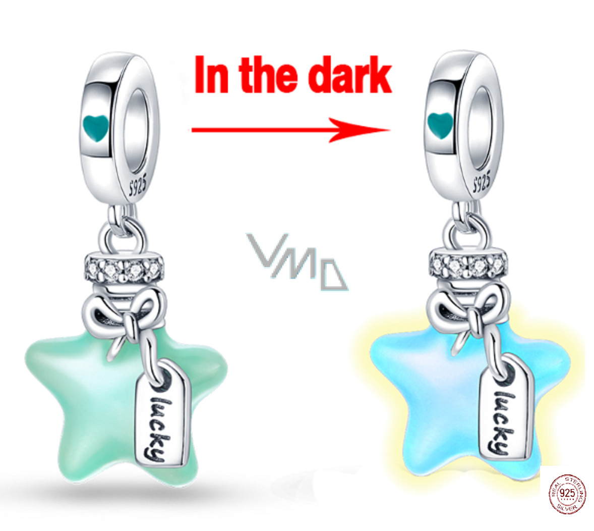 Charm Sterlingové stříbro 925 Hvězdná jiskra, 2v1 zářící ve tmě luminozní přívěsek na náramek vesmír
