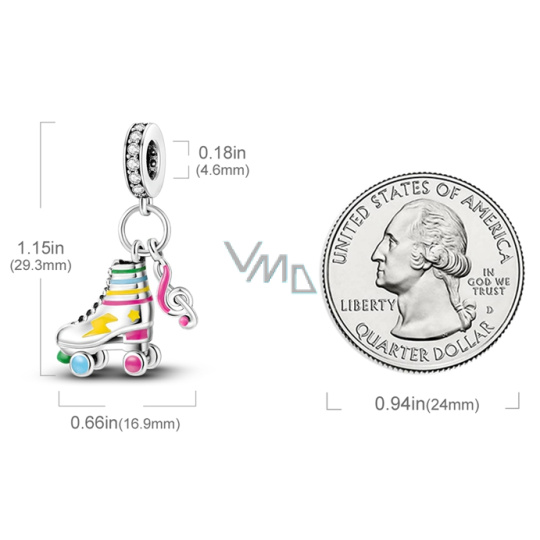 925 Sterling Silver zářící v přívěsku s kolečkovými bruslemi a houslovým klíčem, dekorovaný s hladkým barevným smaltem a bílými třpytivými drahokamy Zirkonu. Vyprávějte svůj příběh s každým přívěskem a vytvořte náramek, který odráží, kdo jste. Tvůj styl. Váš náramek. Tvůj příběh.