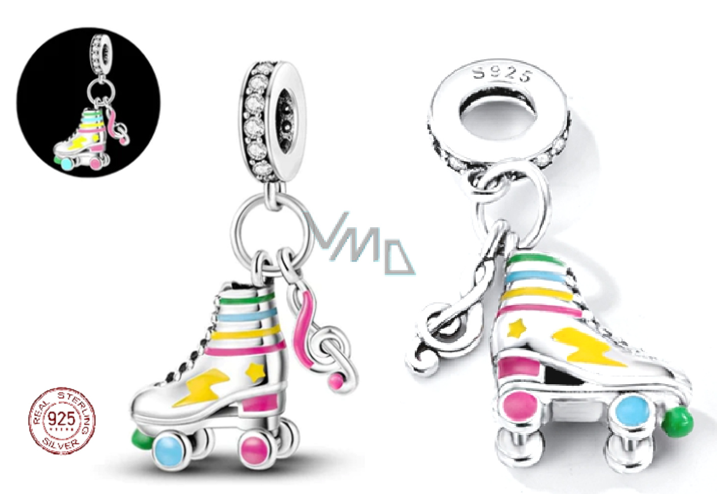 Charm Sterlingové stříbro 925 Kolečkové brusle s houslovým klíčem, zářící ve tmě, luminozní přívěsek na náramek sport