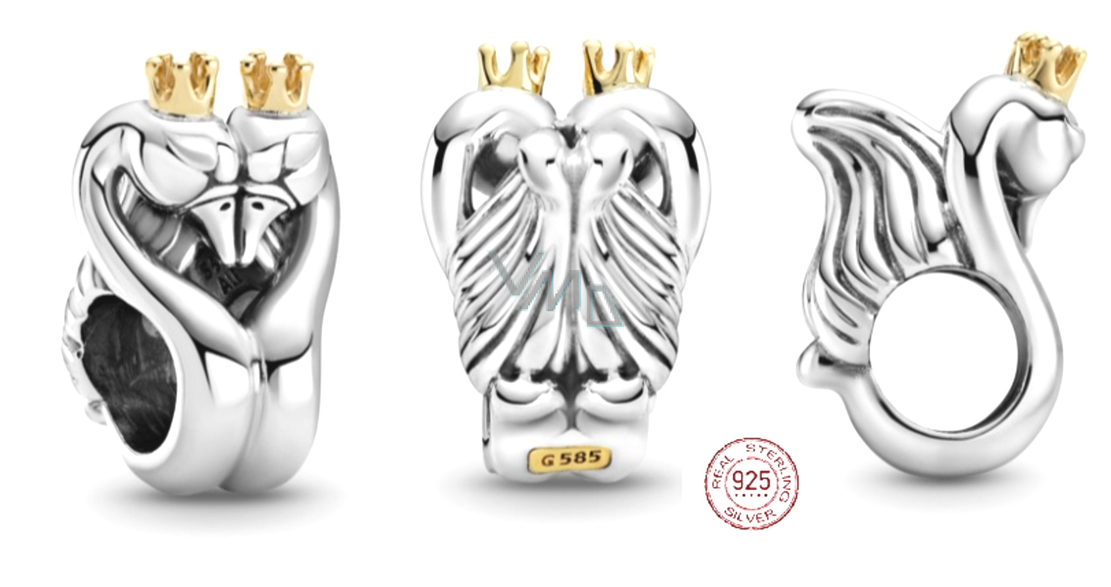 Charm Sterlingové stříbro 925 Labutě a srdce, korálek na náramek láska